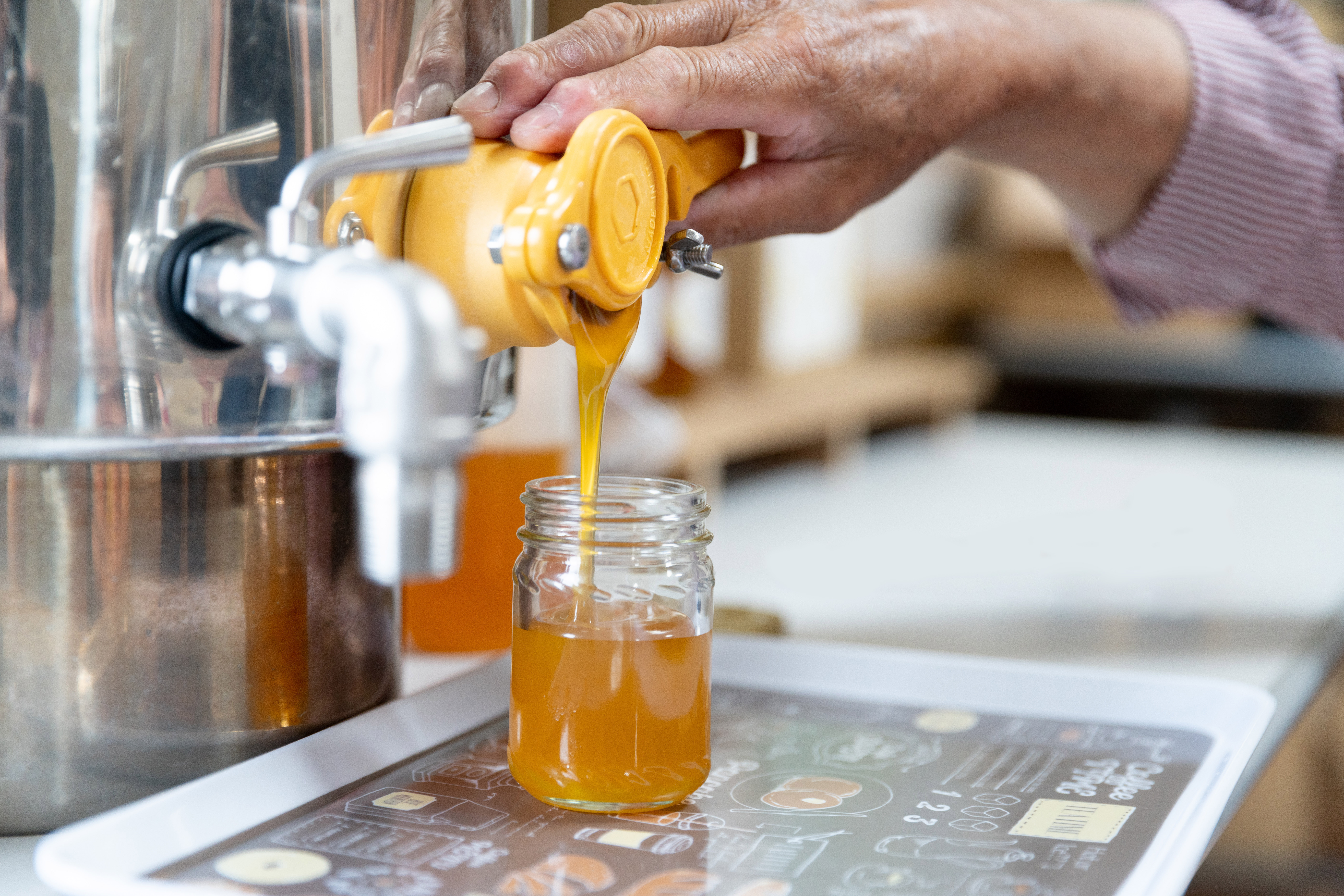 上大田:一番、困るのは複数の巣箱でとれるタイミングがすべて同じになることなんですよ。採蜜の作業って、蜜のついた巣を洗濯ネットみたいなやつに入れて、ひたすらポタポタ落ちてくるのを待つんです。だからめちゃくちゃ時間がかかるし、ポリタンクもそんなにいっぱいありません。
