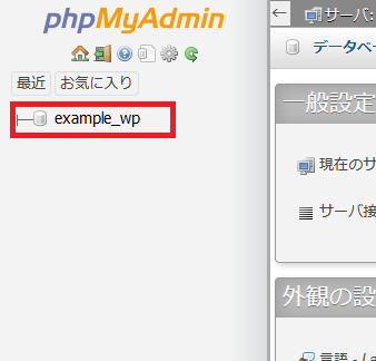 - 左メニューからWordPressで使用しているデータベース名をクリックします。