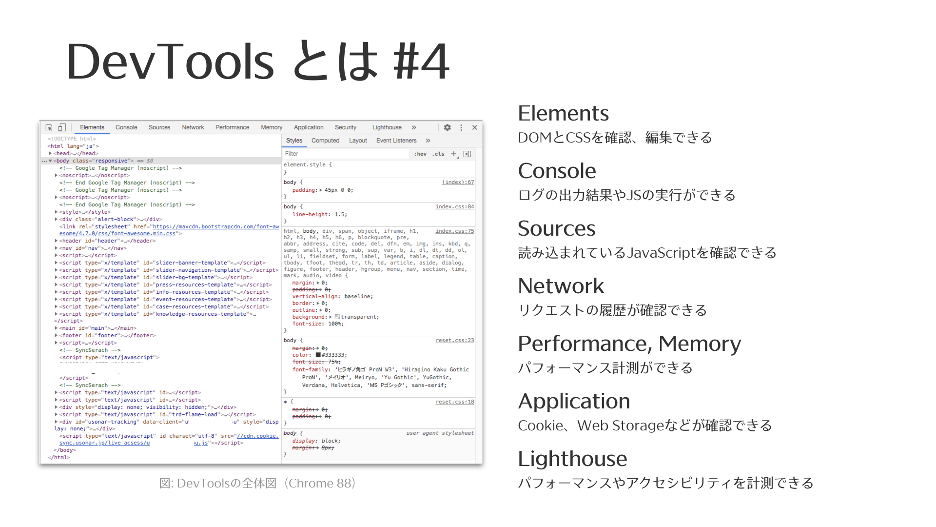 ここまでウェブサイトを"つかう"人向けのDevToolsの使い方講座でした。