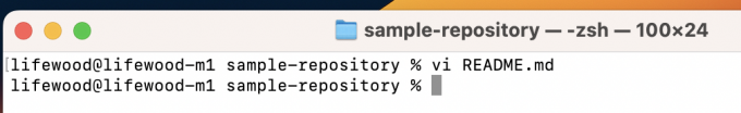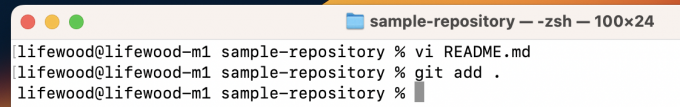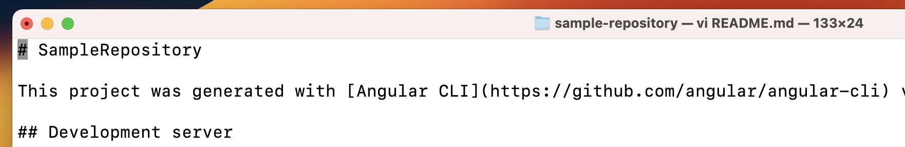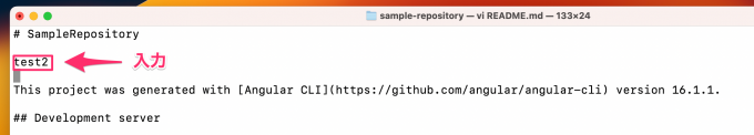 次の作業はリポジトリへのファイルの追加ですが、その前に、追加するファイルを編集します。下記の例ではviで編集していますが、他のエディタでも結構です。