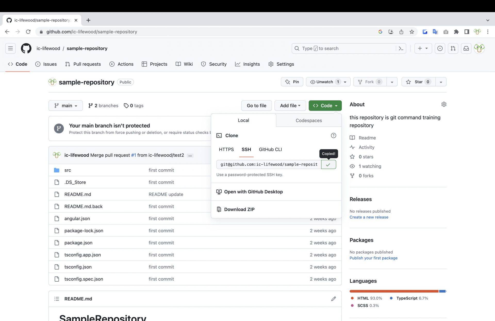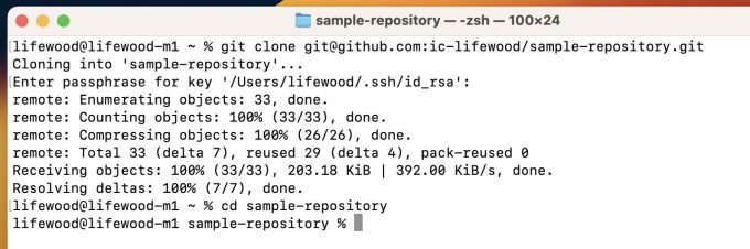 $ git clone git@github.com:ic-lifewood/sample-repository.git