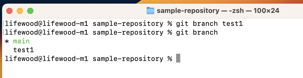 # 入力されたブランチに切り替わります。(*が付いているのが現在作業中のブランチです)