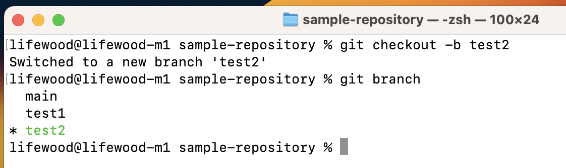 # 入力された名前のブランチを作成すると同時にブランチが切り替わります。