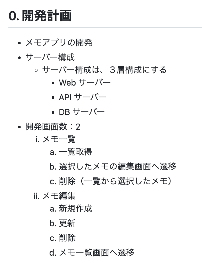 今回は上図にある通り、サーバーを使ってメモアプリを開発します。構築するサーバーは3台で、開発画面数は2つです。