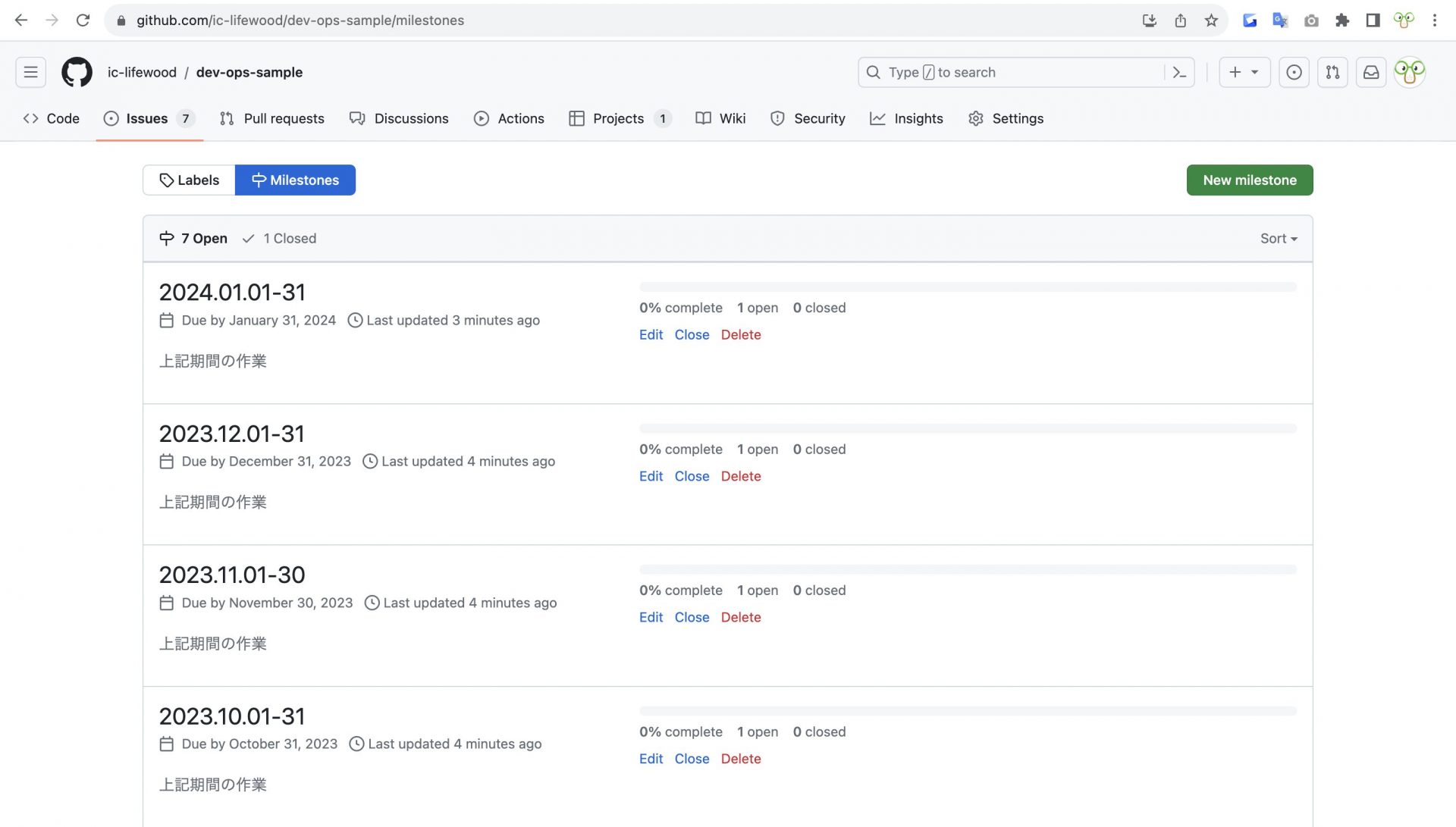 さらにマイルストーンを設定しておくと、各作業の期限を把握することができます。