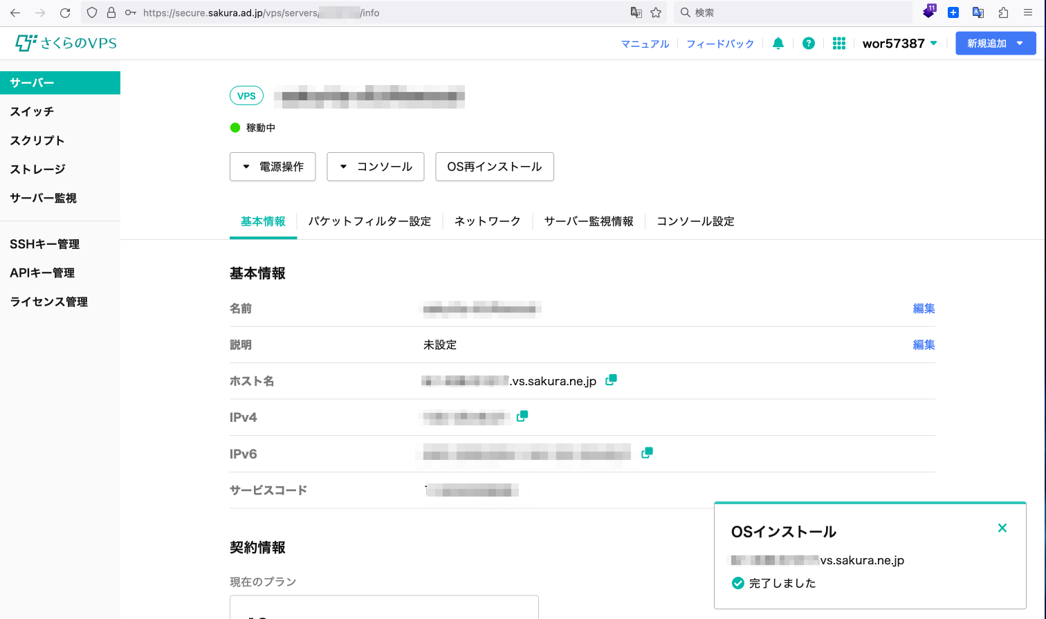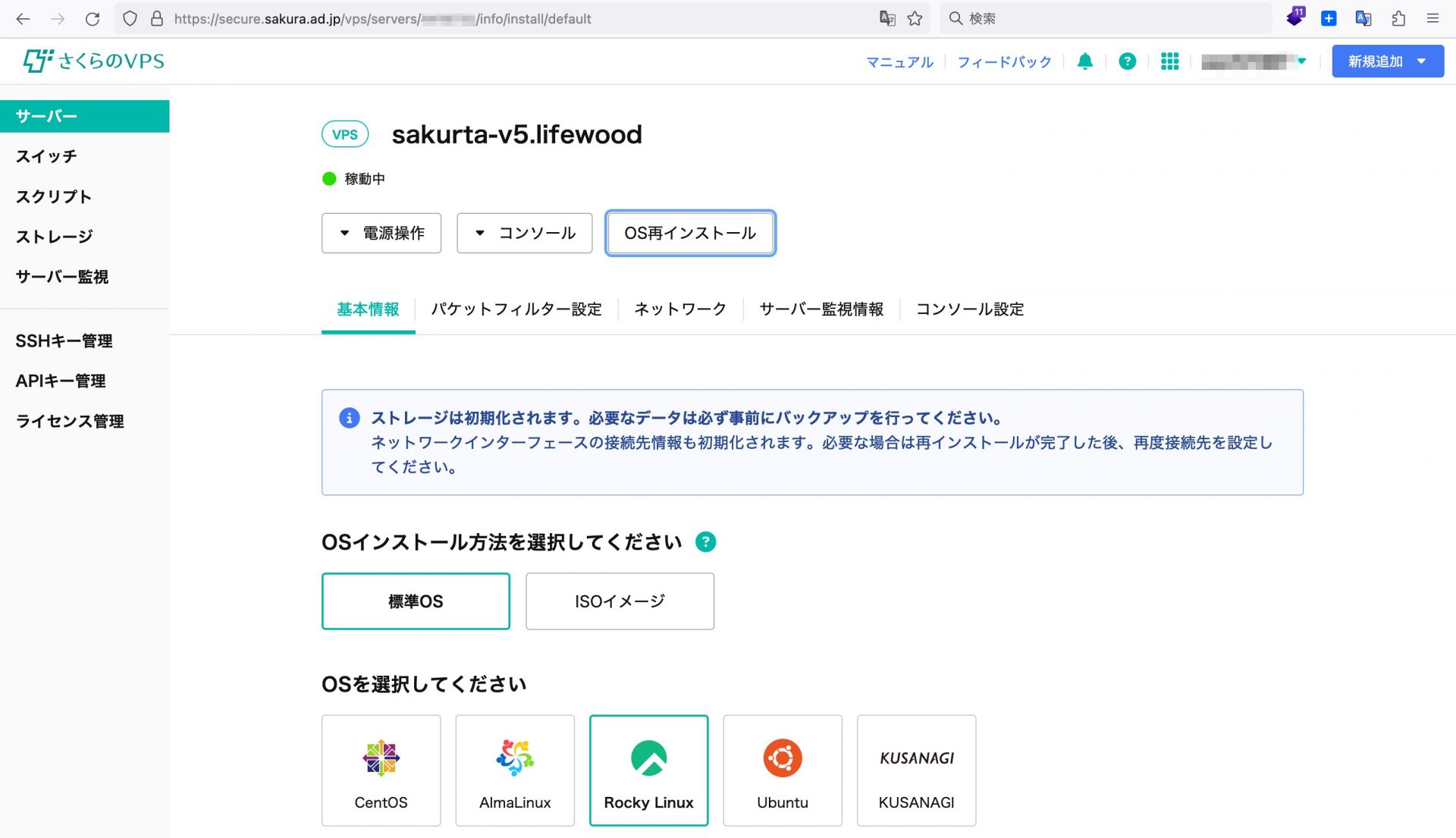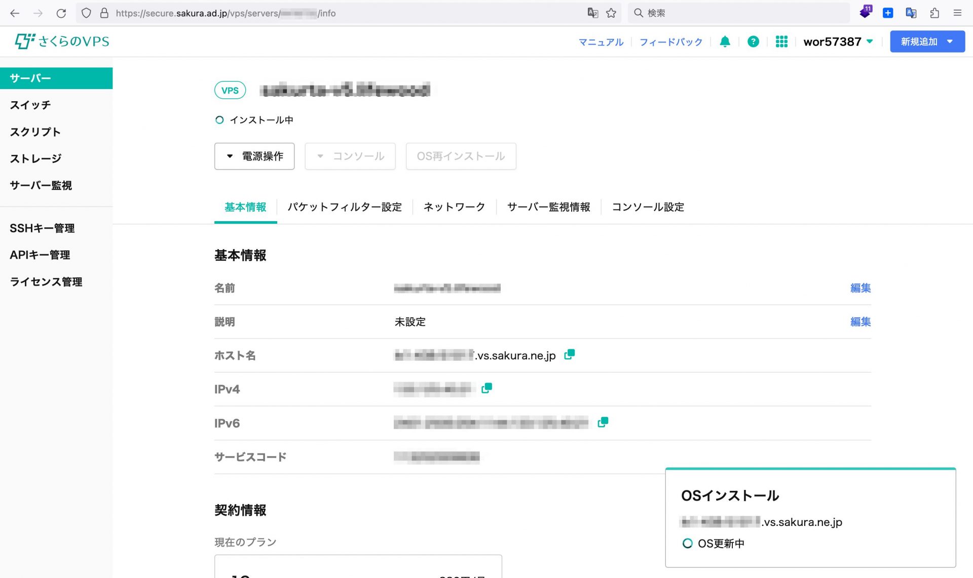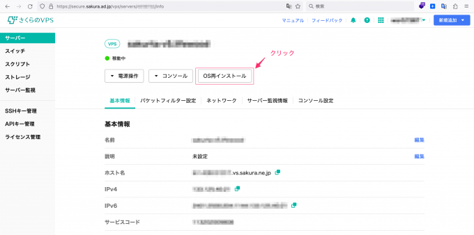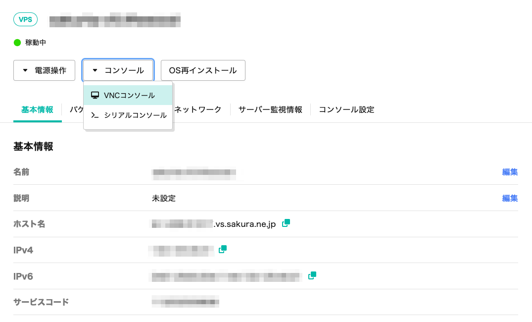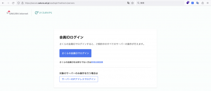 - さくらのVPSを契約後、さくらのVPSのコントロールパネルにアクセスします。
