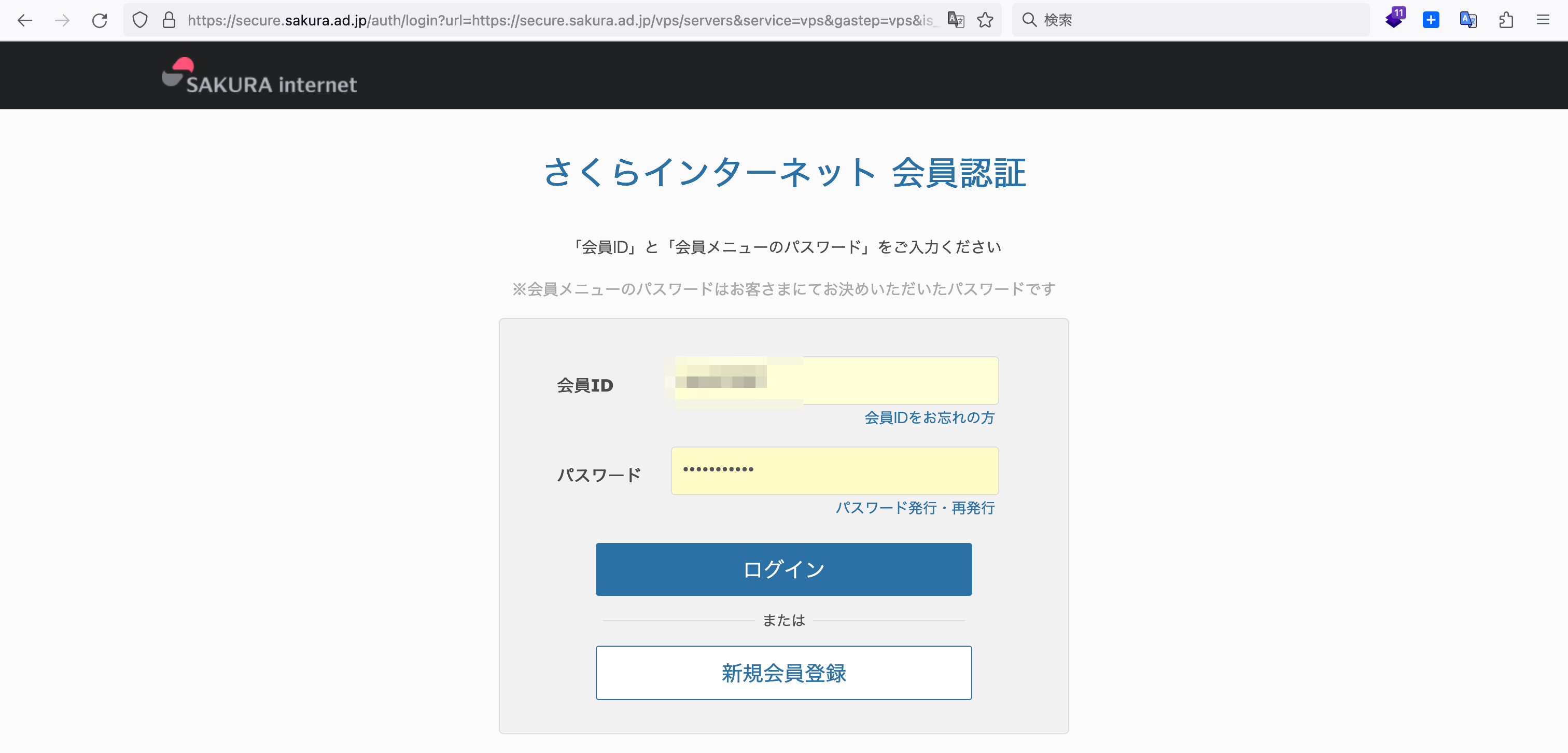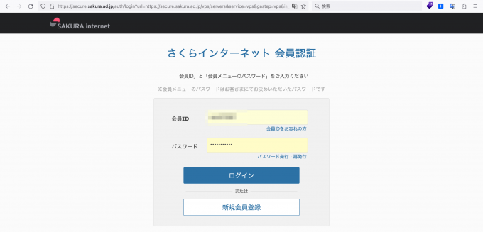 - 「さくらの会員IDでログイン」をクリックし、ログインページにて会員IDとパスワードを入力してログインします。