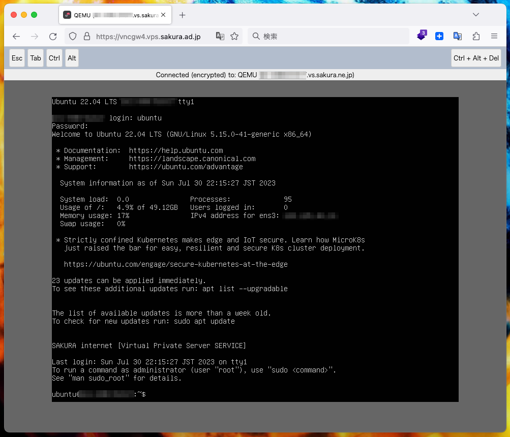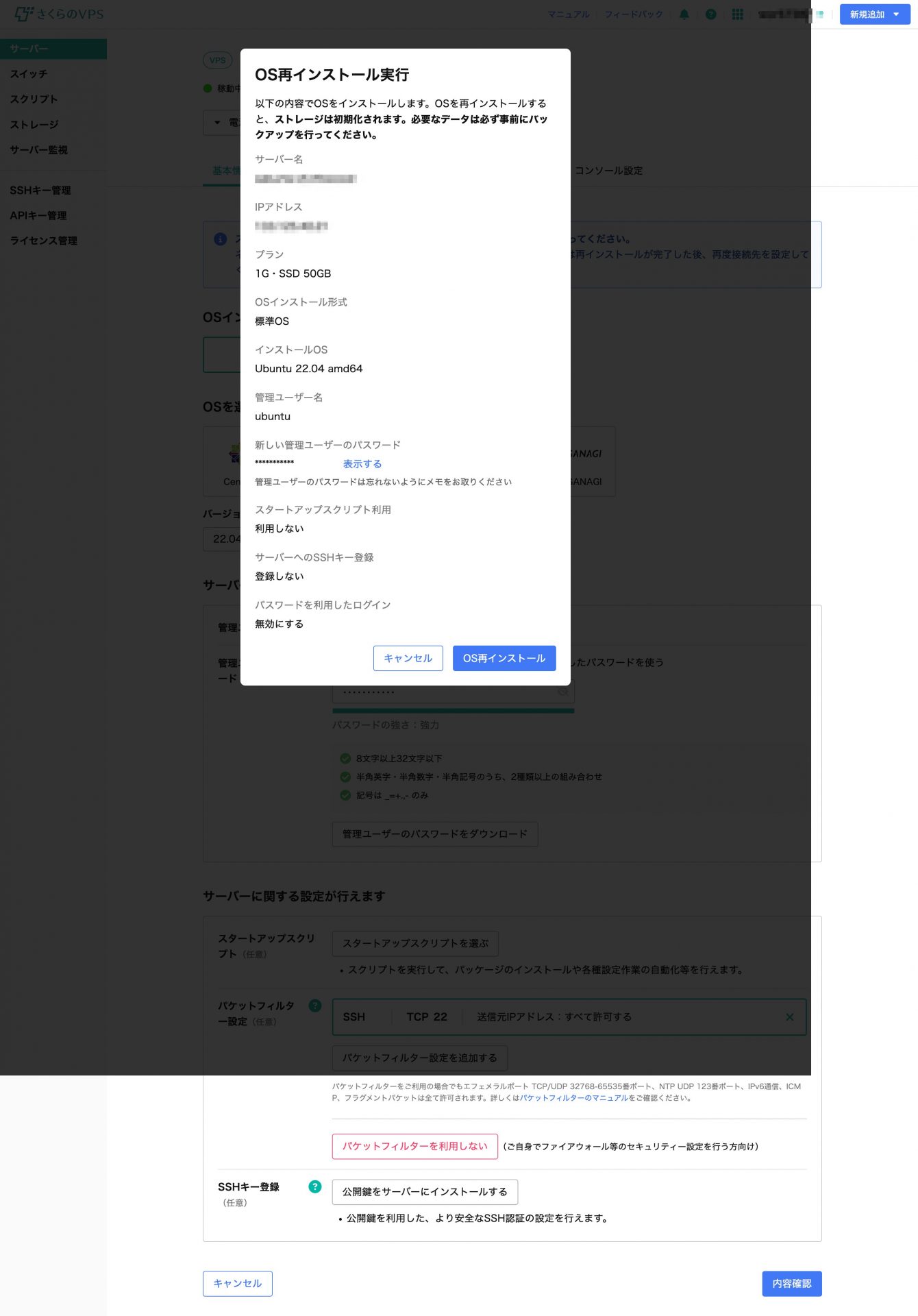 以上で、さくらのVPSにOS(Ubuntu)をインストールできました。