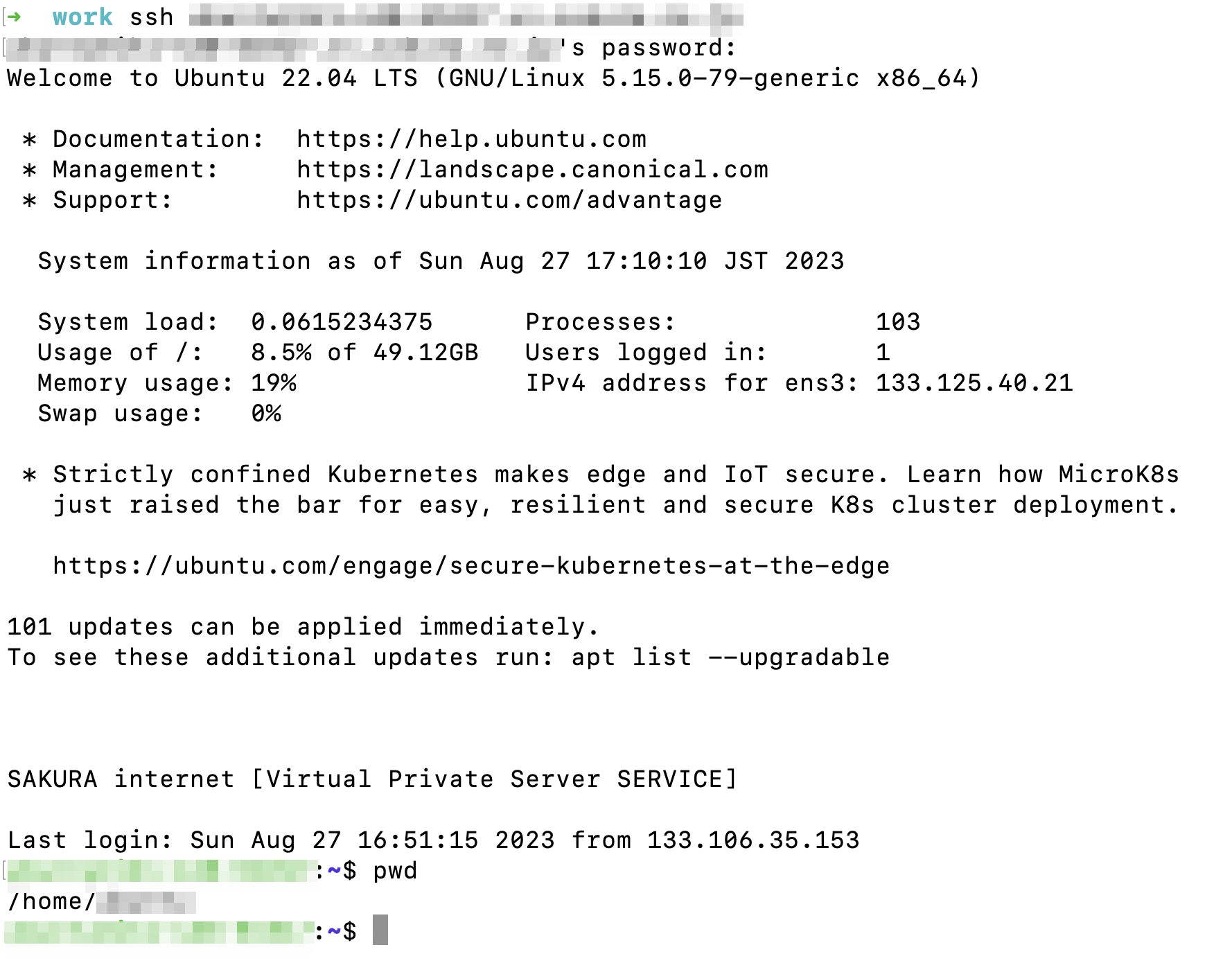 $ ssh ubuntu@host-name.vs.sakura.ne.jp