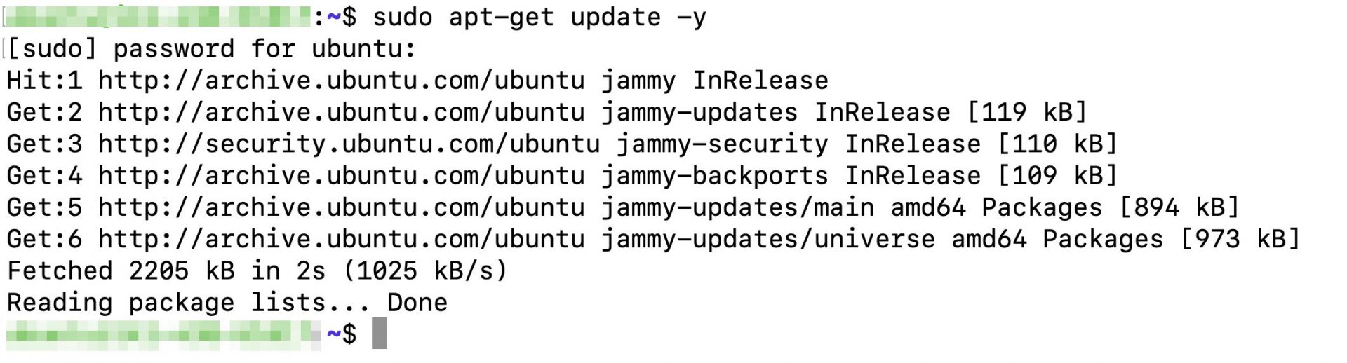 $ sudo apt-get update -y