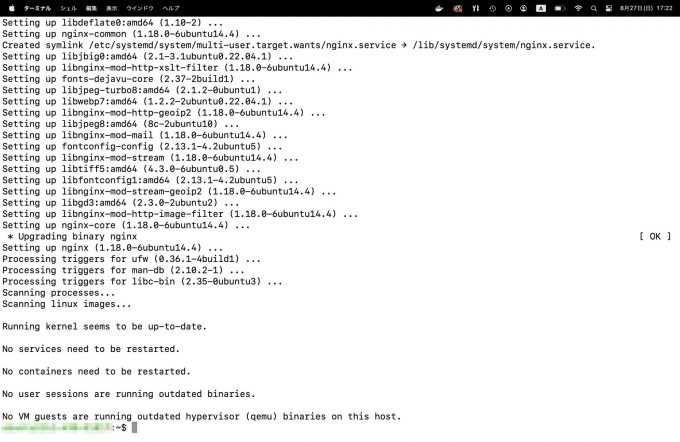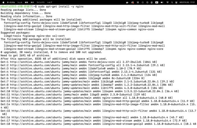 SSHを使用してサーバーにログインし、nginxをインストールします。以下はUbuntuにおけるコマンド例です。