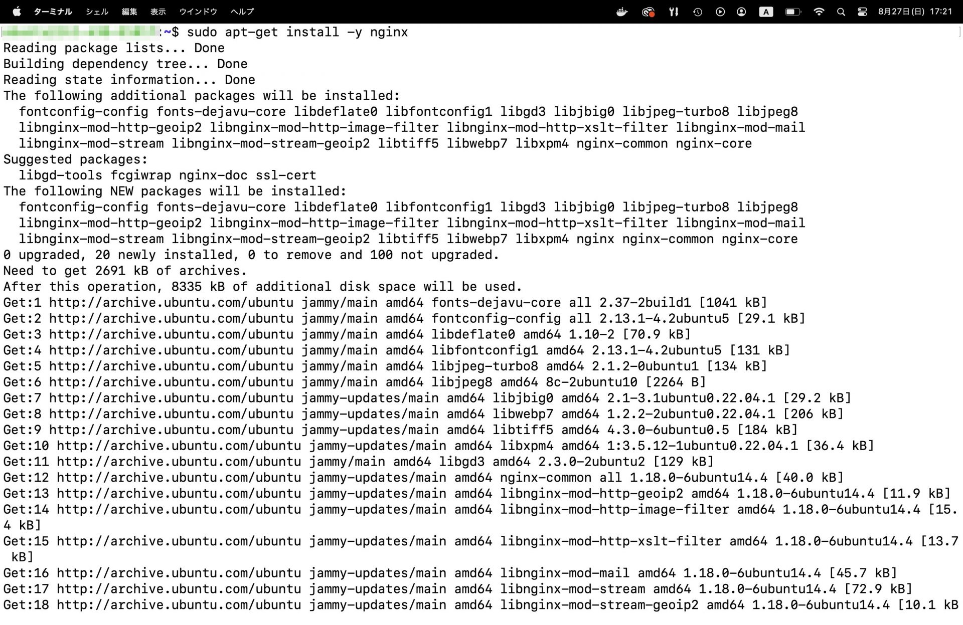 $ sudo apt-get install -y nginx