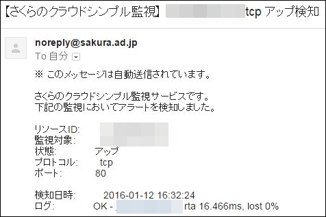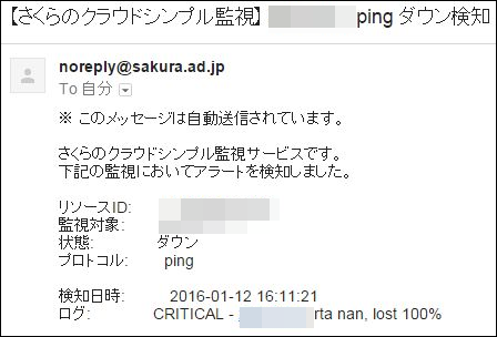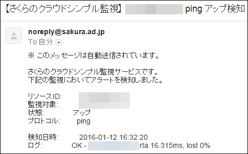 サーバのグローバルIPアドレスに対して定期的にpingを実行し、サーバの死活監視を行うことができます。