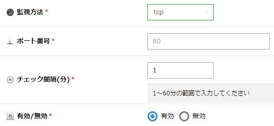 TCPポートを指定して、サーバ上で稼動しているサービスの監視を行うことができます。ポート番号は自由に指定することができますので、http/https以外のプロトコルも監視することができます。