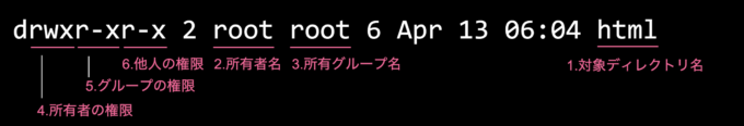 - 2. ディレクトリ”html”の所有者名はrootです。