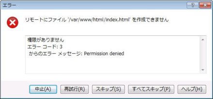 日本語化されていな英語のツールをお使いの場合は、permission(パーミッション)がなんとかと表示されると思います。permissionとは英語で「権限」のことです。