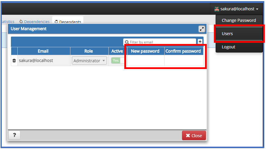 各ツールの管理画面にはユーザ部分に「デフォルトユーザ名@localhost」、パスワード部分に「データベースアプライアンス作成時に指定したデフォルトユーザのパスワード」を使用してログインすることができます。