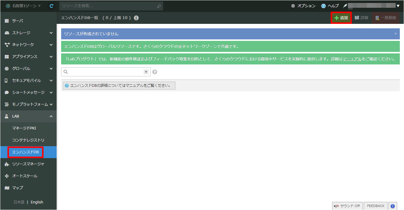 エンハンスドデータベースは現在Labプロダクトとして提供されており、無償でご利用いただけます。Labプロダクトは実際の製品投入前の性能評価を目的とした環境となります。ご利用に際しては Labプロダクトとは のページに記載の注意事項をよくご確認の上ご利用ください。