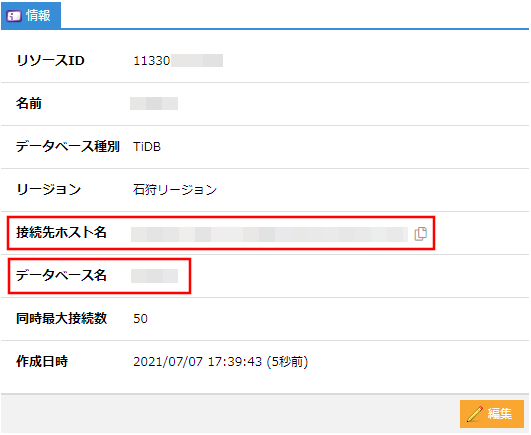 接続先情報が表示されるので、この情報をもとにMySQL互換クライアントから接続を行います。
