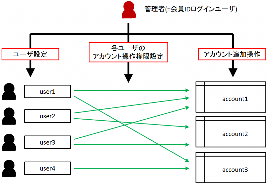 - 各ユーザのアカウントへの アクセスレベル設定