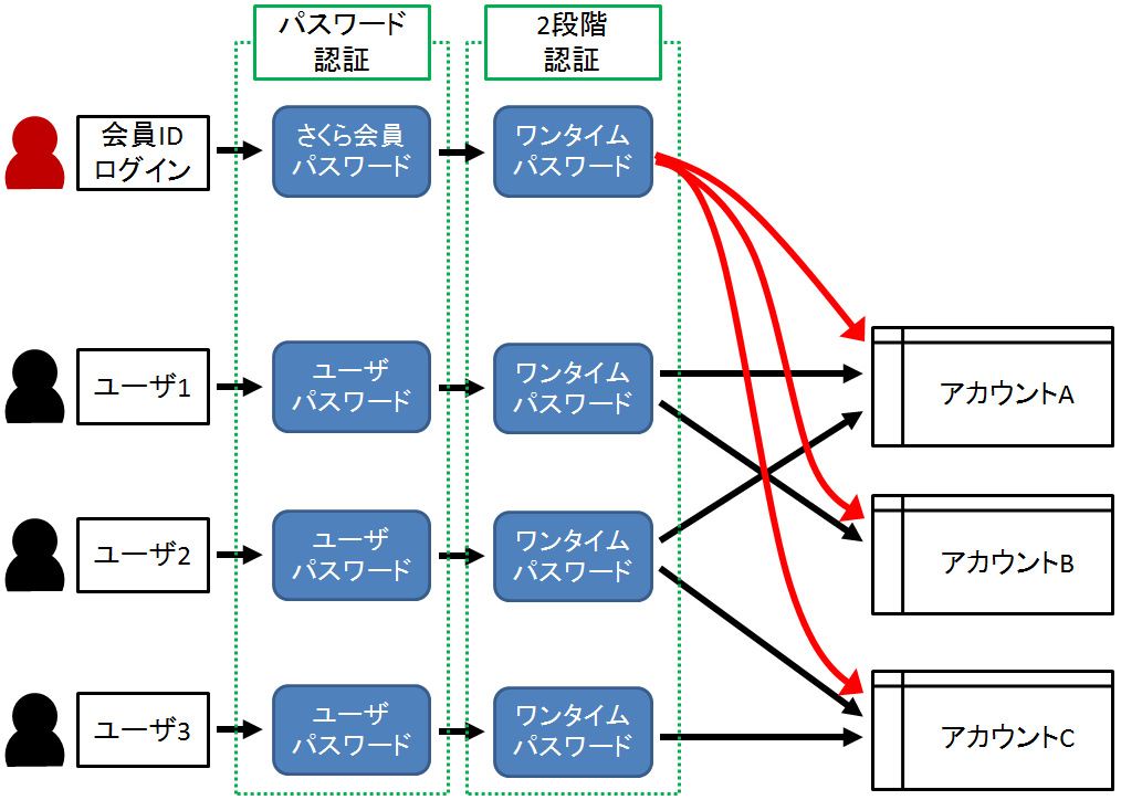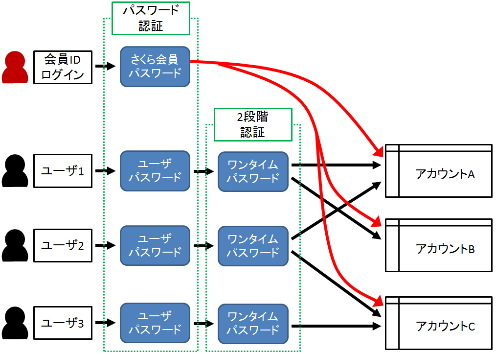 これにより、同一の料金請求先(会員ID)で複数の作業者がさくらのクラウドの管理を担当している場合などでも、さくらのクラウドを使用しているサービスや開発プロジェクトごとにアカウント(作業領域)を分けたり、実際にさくらのクラウドの操作を行う担当者個々にユーザを作成してパスワード情報の安全な管理を行うことが可能になります。