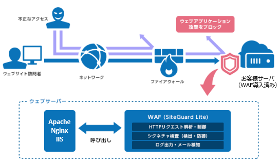 ウェブサイトを対象にしたクロスサイトスクリプティングやSQLインジェクションなどの攻撃を高確率でブロックします。