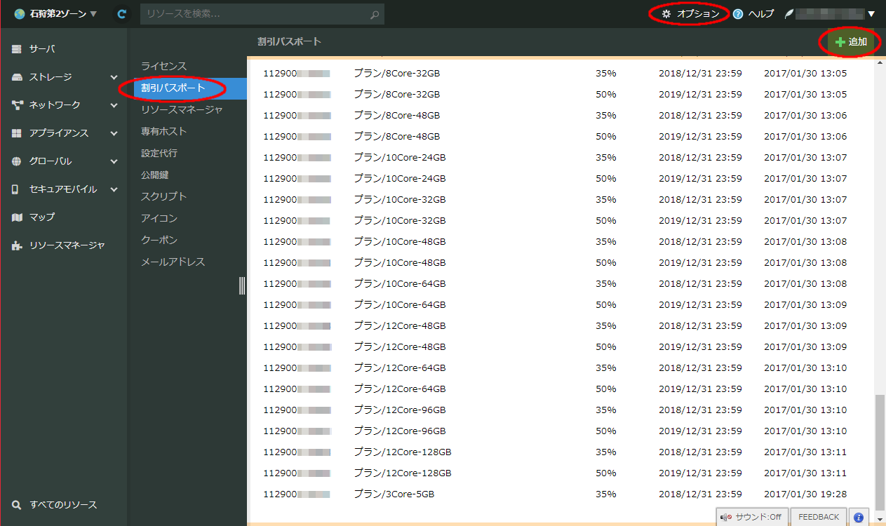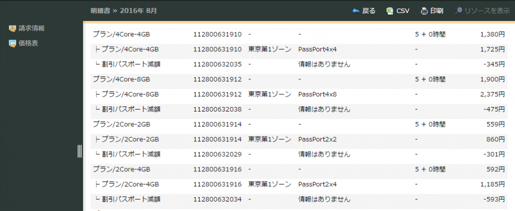 • 割引パスポート利用権購入日やサーバを作成した時期によらず、有効期限内の割引パスポートの契約があれば請求額を元に割引適用対象サーバが自動的に決定されます