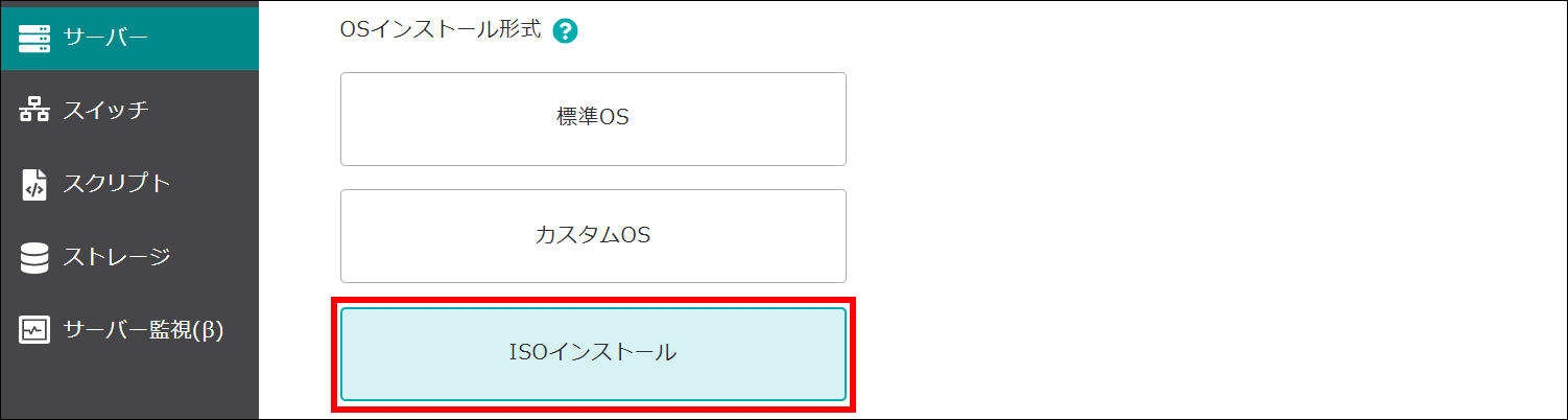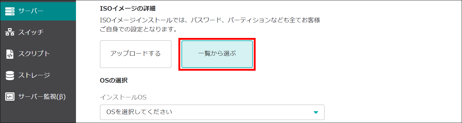 「ISOイメージを選択する」の「一覧から選択する」は、さくらのVPS V5バージョンのみご利用いただけます。