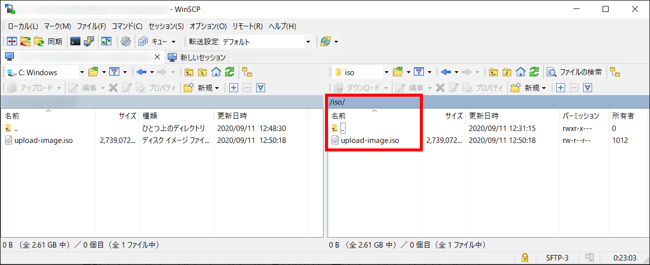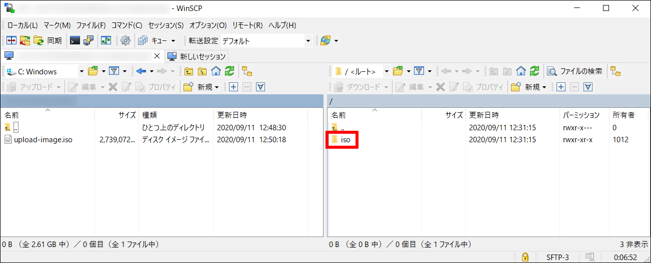「iso」フォルダ内へデータの転送が完了してから Winscp を終了します。