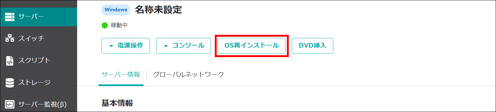 コントロールパネル上でOSの再インストール、および他のバージョンのOSインストールが可能です。