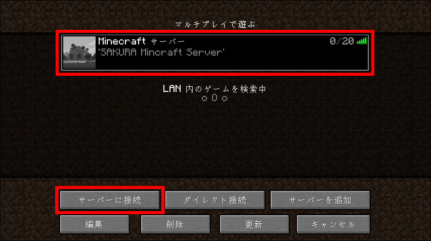 追加したサーバーを選択し、「サーバーに接続」をクリックすることでゲームが開始します。