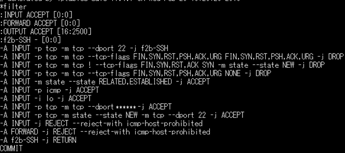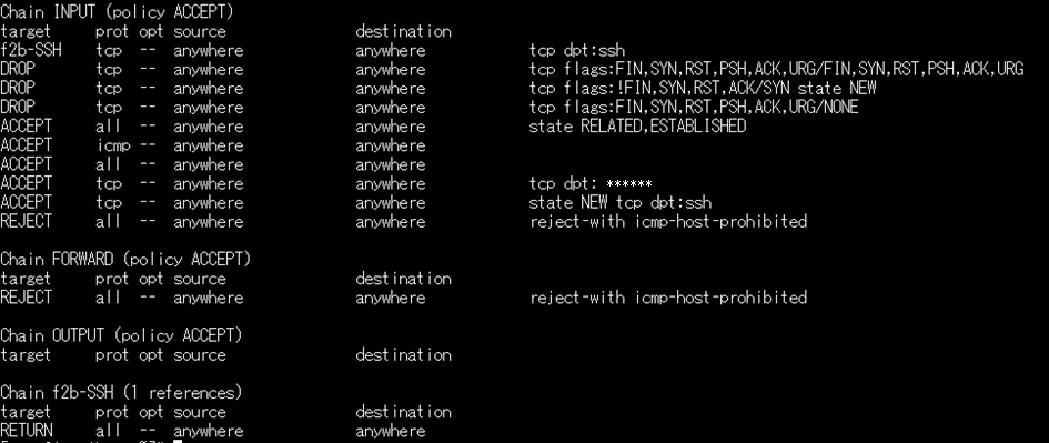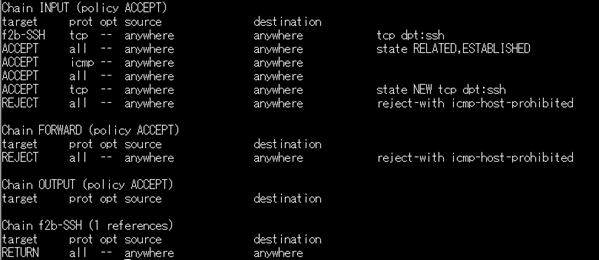 f2b-SSH : fail2banと呼ばれるソフトウェアで利用するChainです