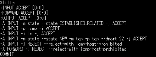 ※ iptablesの設定内容は、サーバーへの攻撃対策方法やお客様の利用用途により多岐にわたり、このページに紹介する設定の限りではありません。
