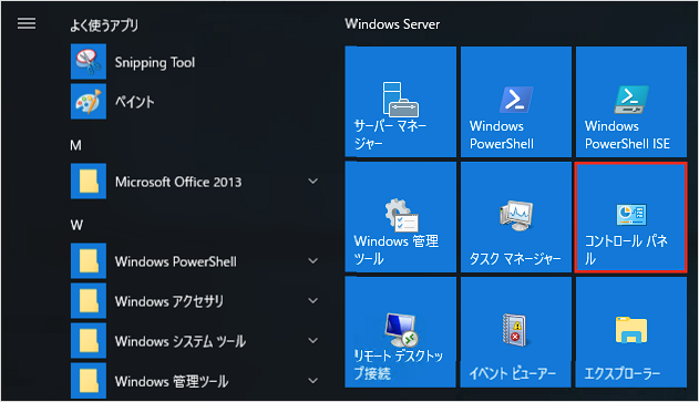 「スタート」メニューの中にある「コントロールパネル」をクリックします。