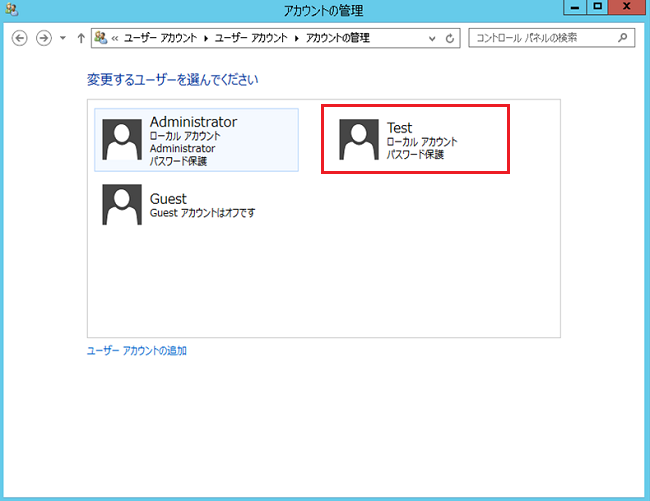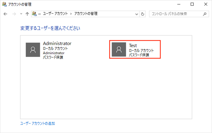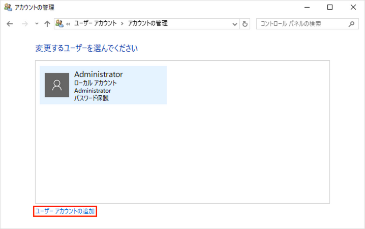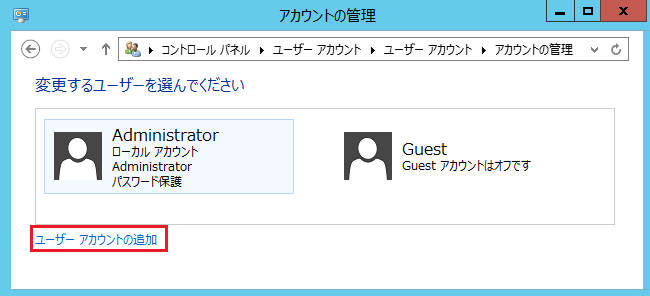 「ユーザーアカウントの追加」をクリックします。