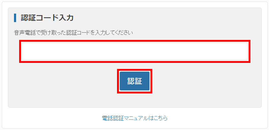 「SMS」または「音声電話」で受け取った認証コードを入力します。