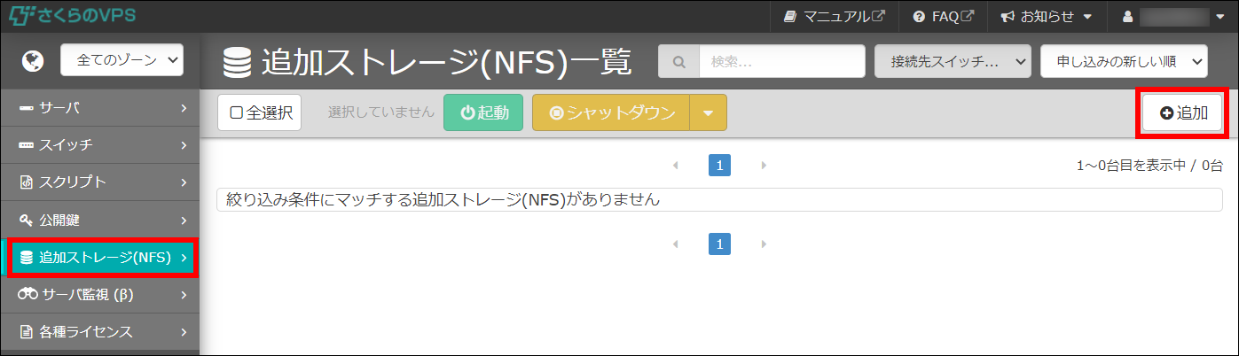 以上で追加ストレージ(NFS)を利用するための設定は完了です。