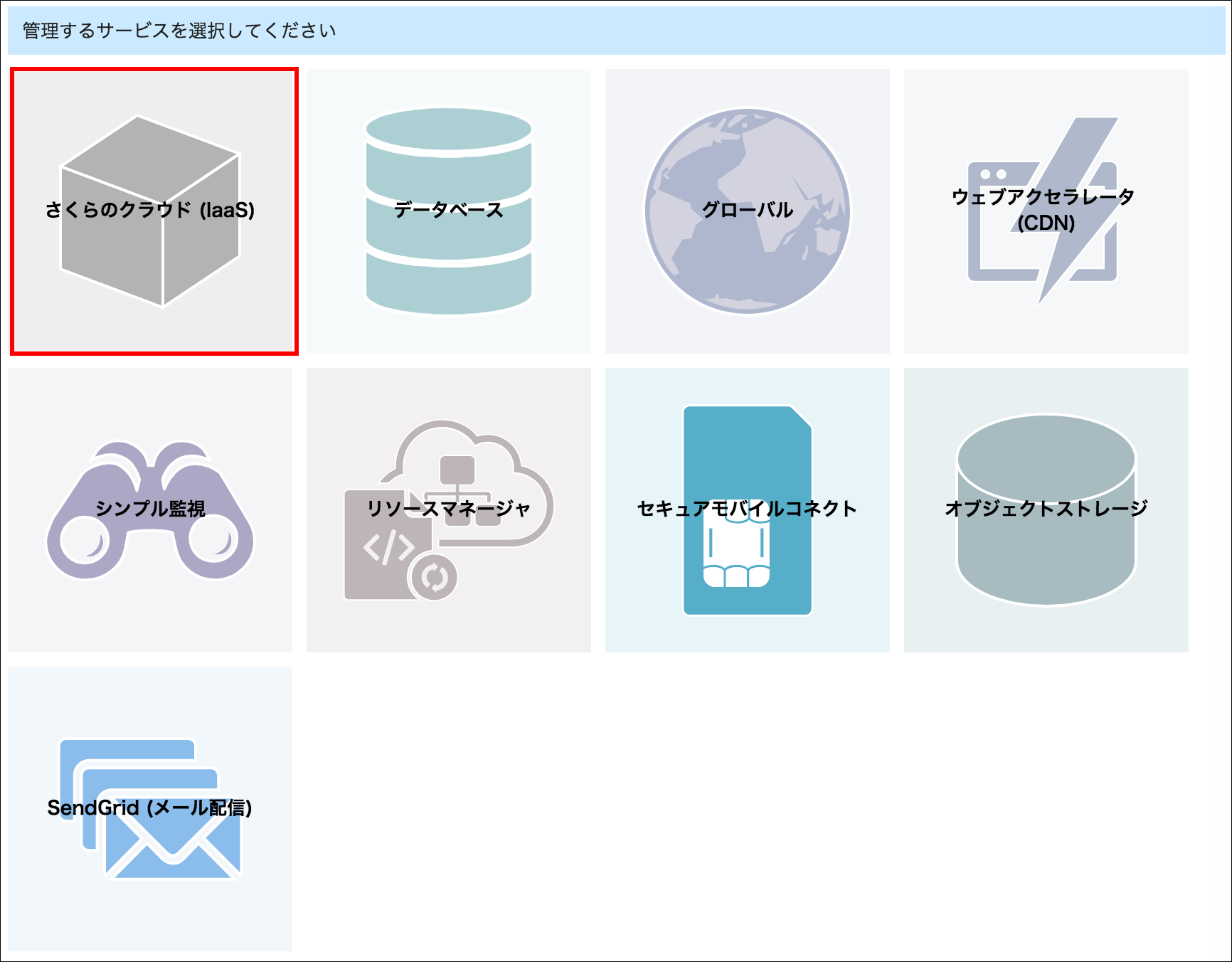 「さくらのクラウド(IaaS)」のアイコンをクリックします。