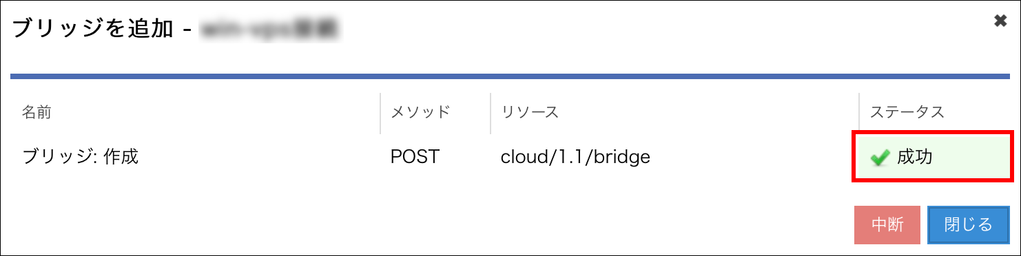 ステータスが「成功」になれば、ブリッジの作成は完了です。「閉じる」をクリックして作成作業を終了します。