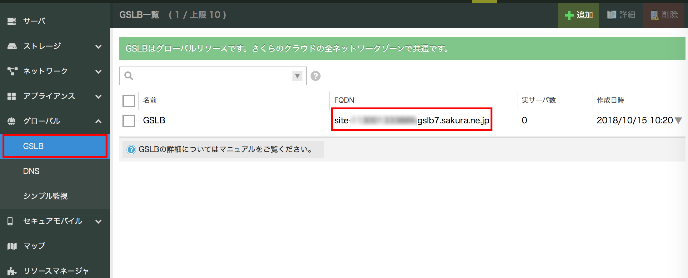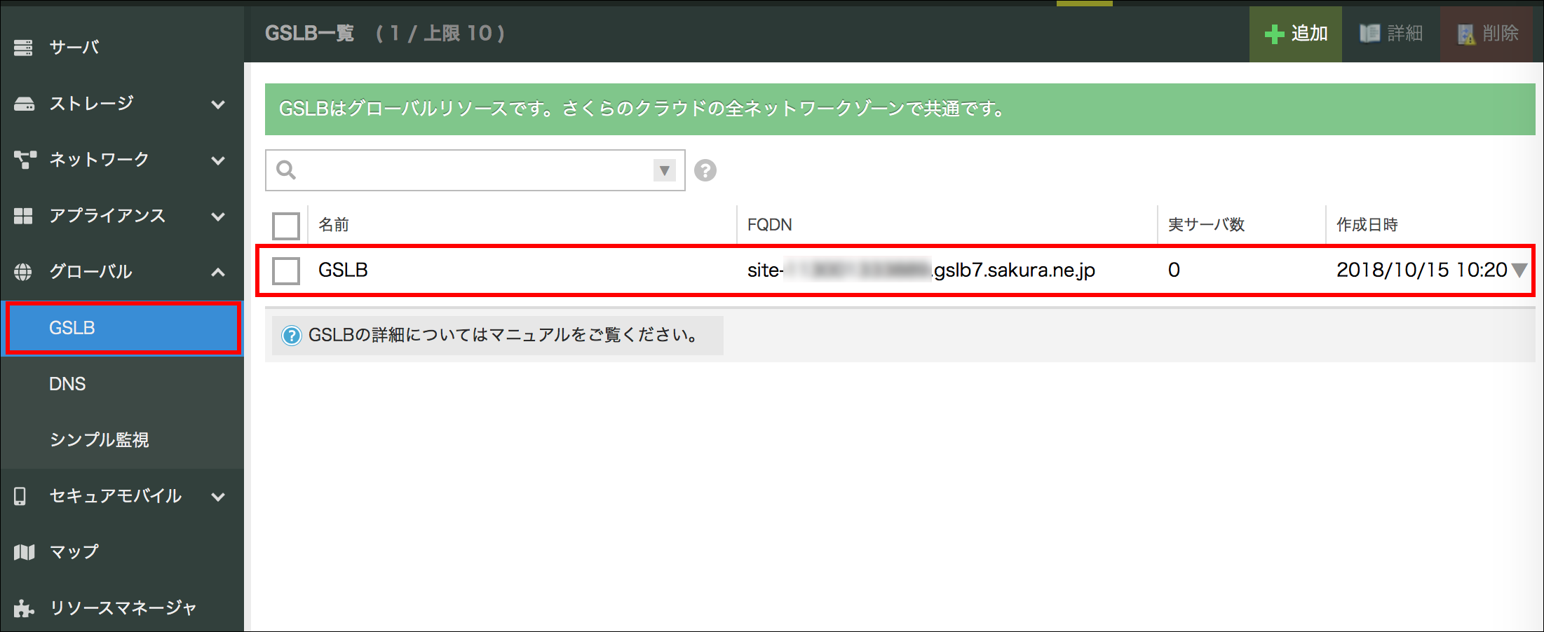 GSLBの料金や仕様については、さくらのクラウド ドキュメント「 GSLB(広域負荷分散) 」をご確認ください。