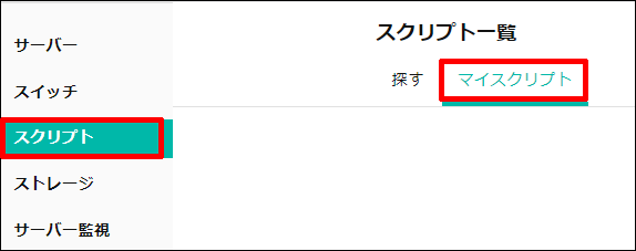左メニューの[スクリプト](①)をクリックし、右側の[スクリプトを作成](②)をクリックします。