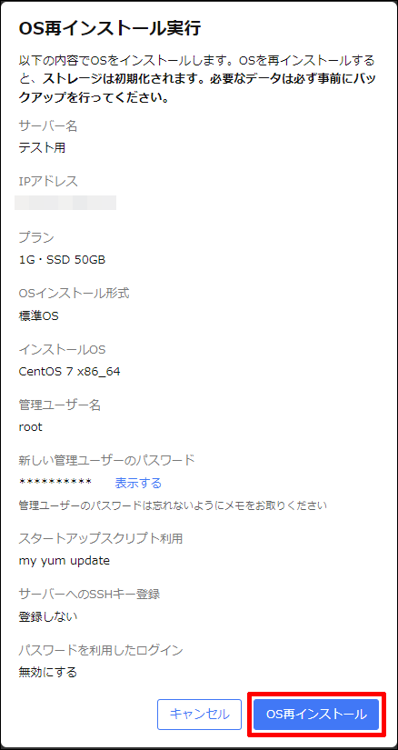 確認画面で問題がなければ[OS再インストール]をクリックします。