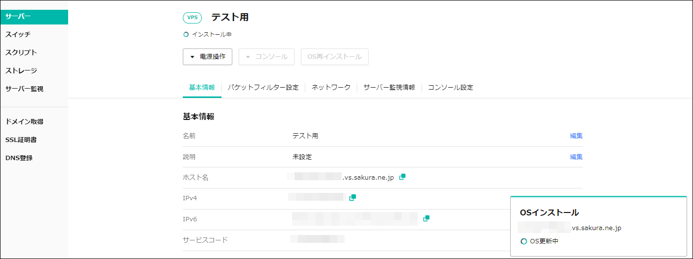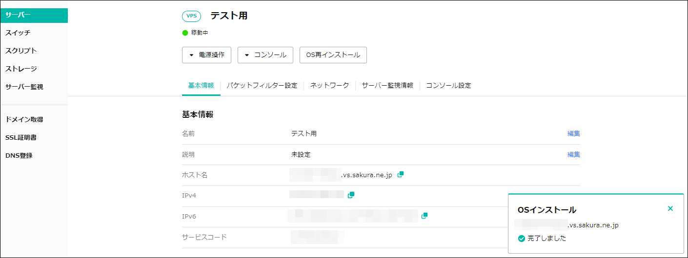 スタートアップスクリプトはOS再インストールが完了してから実行されるため、実際に起動してから利用できるまでしばらく時間をおいてください。以上でスタートアップスクリプトの作成と実行は完了です。