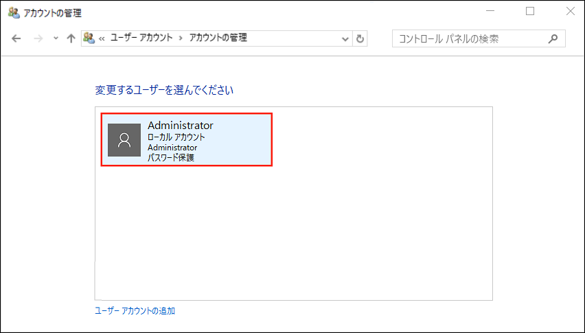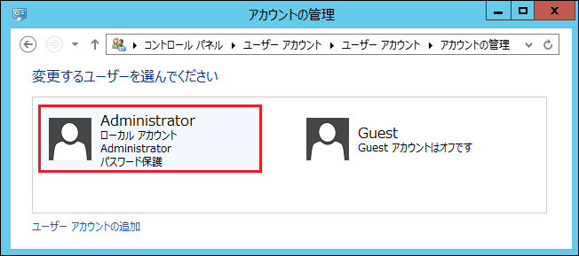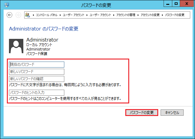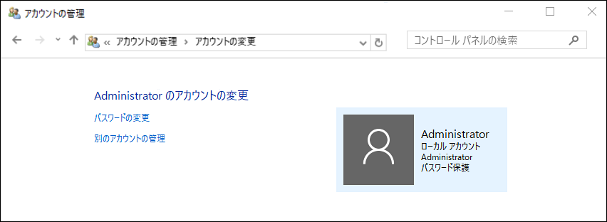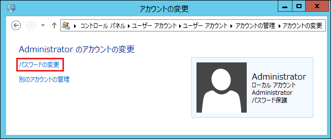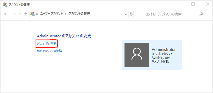 パスワードの変更が完了すると「Administratorのパスワードの変更」画面に戻ります。