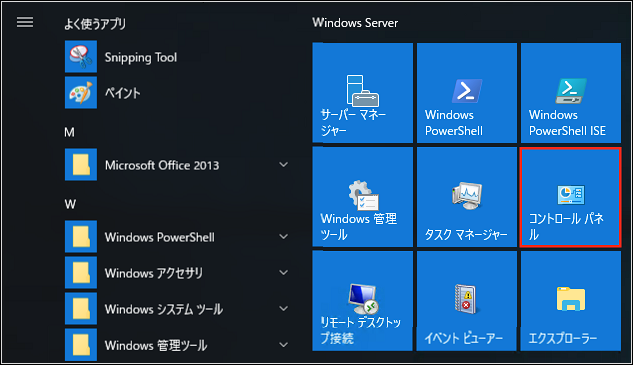 「スタート」メニューの中にある「コントロールパネル」をクリックします。