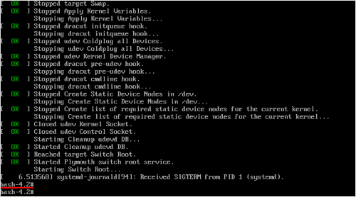 「bash-*.*#」 が表示されていれば、シングルユーザモードでのログインが完了しています。