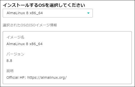 上記ではAlmaLinuxを選択していますが、ご利用中のVPSで動作させているOSを選択してください。