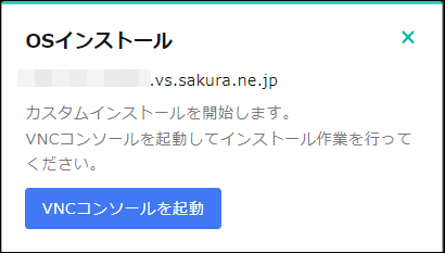 ポップアップからVNCコンソールを開いていただくか、画面上部のボタンよりVNCコンソールを開いてください。