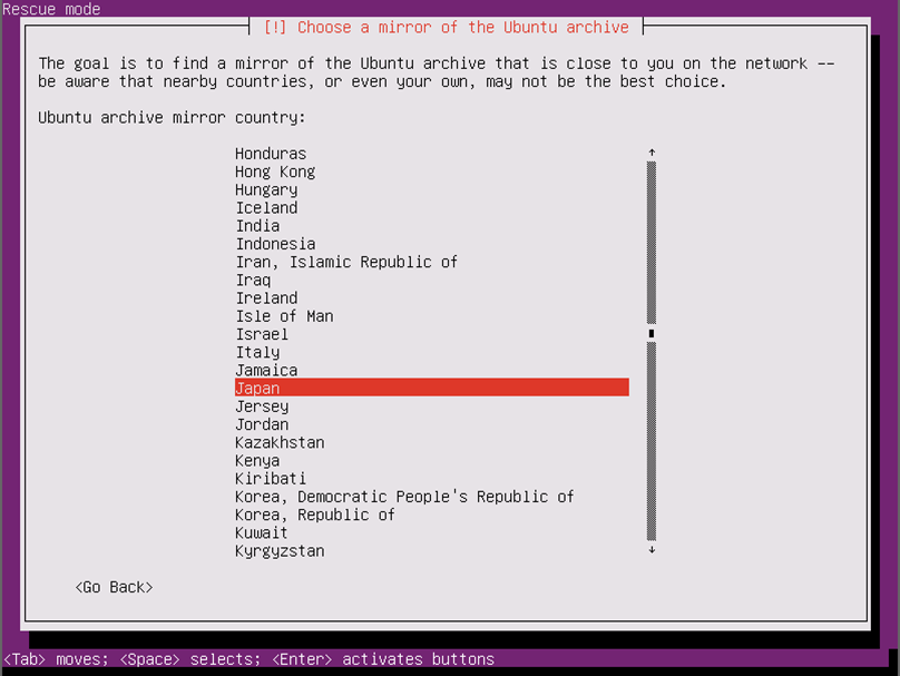 操作に必要なパッケージをダウンロードするためのミラーサーバーの設定を行います。