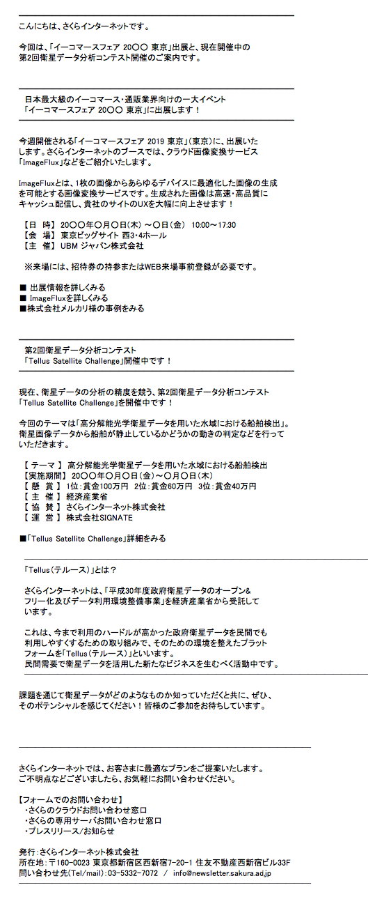 メールマガジン「さくらのおしらせ」がお届けする主な内容